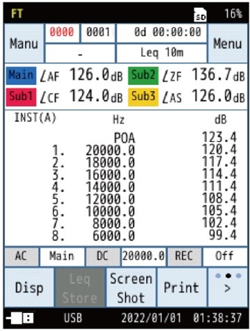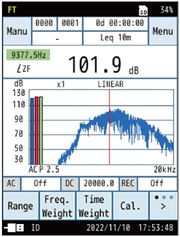 NX-63RT es un programa de análisis de bandas de octava y 1/3 de octava en tiempo real, capaz de medir la frecuencia de infrasonidos.